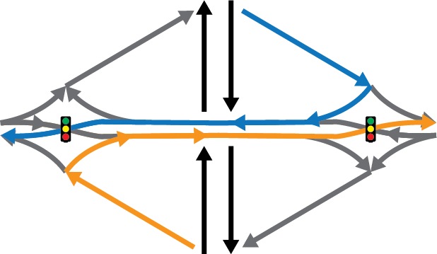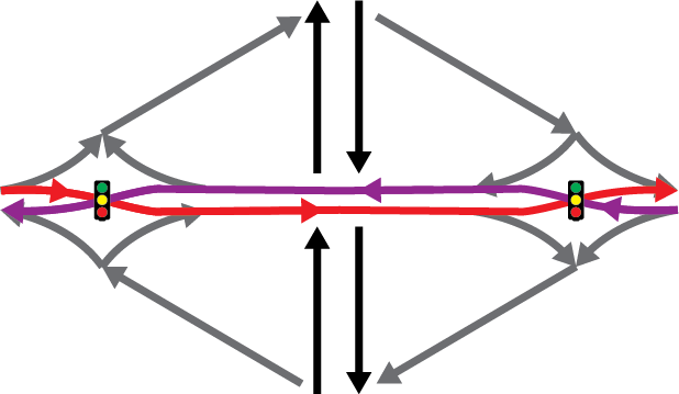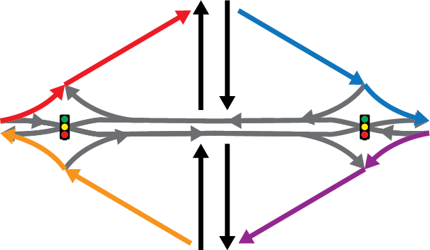 Here's what the interchange would look like if we redesigned it as a diverging diamond.