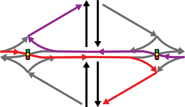 Diverging diamond interchange traffic flow / Wikimedia Commons