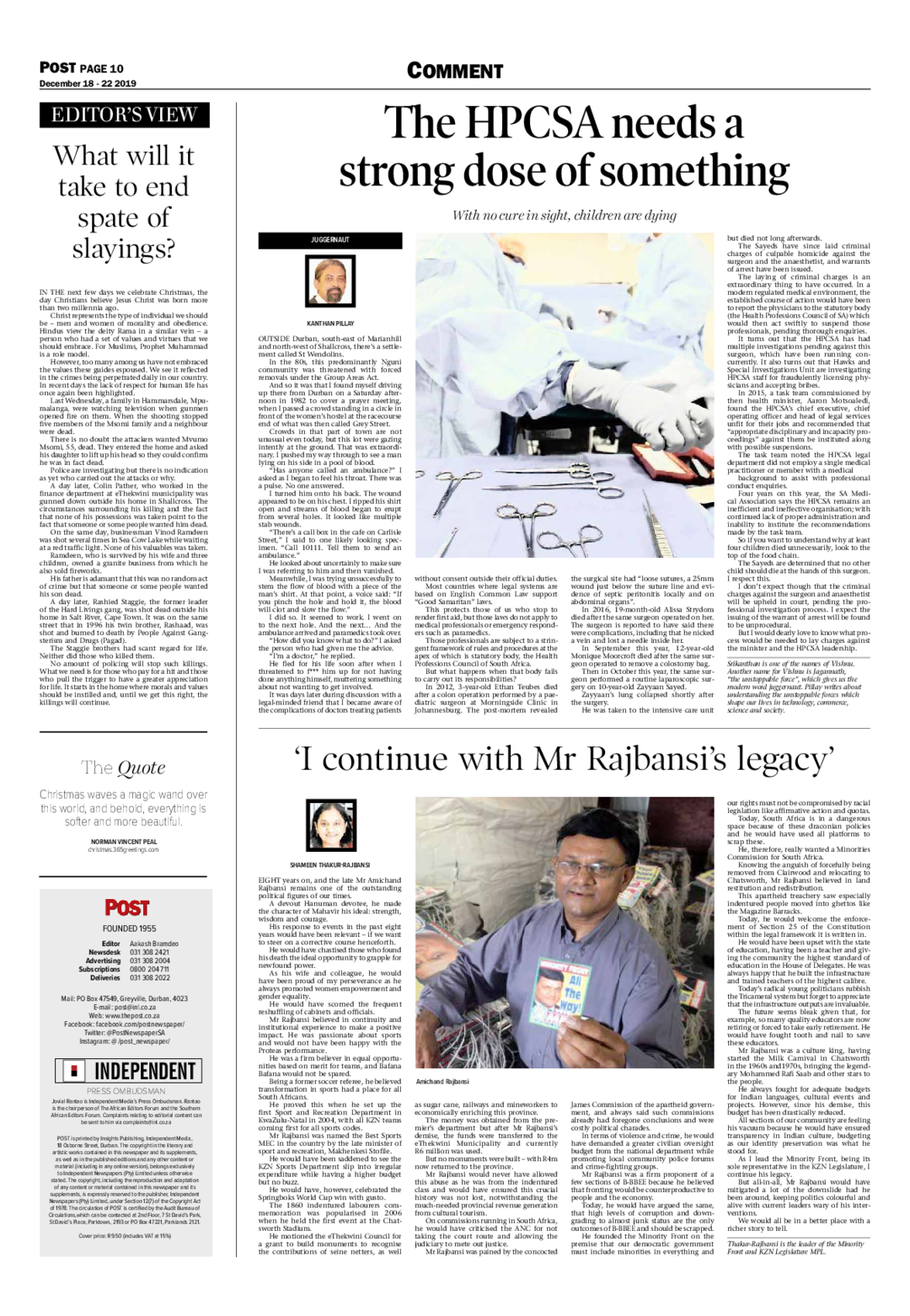 But I would dearly love to know what process would be needed to lay charges against the minister and the HPCSA leadership.