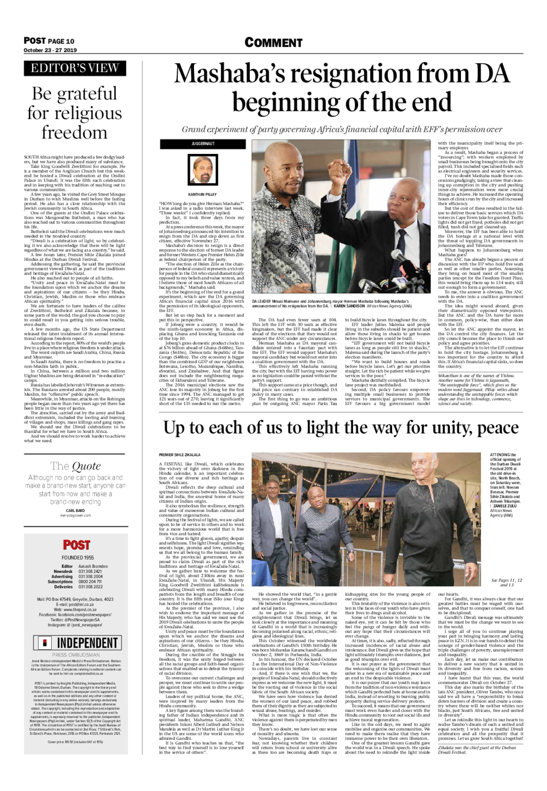 Herman Mashaba as DA mayoral candidate entered into a Faustian pact with the EFF. The EFF would support Mashaba’s mayoral candidacy but would not enter into a coalition government with the DA.