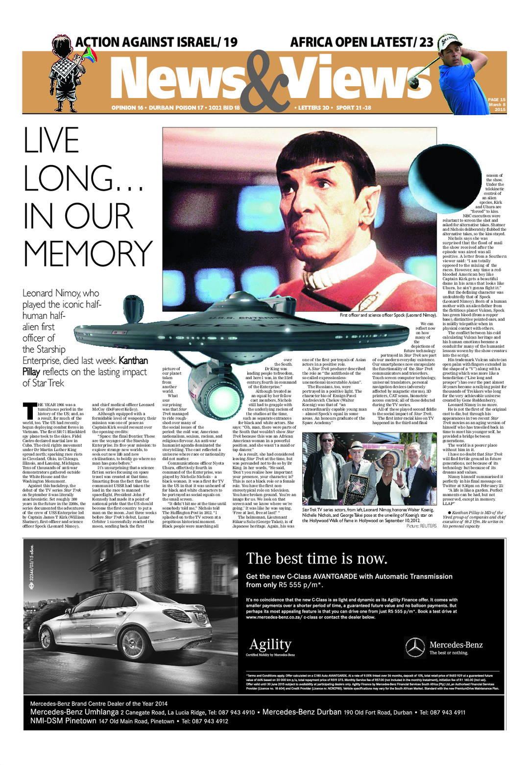 Leonard Nimoy, who played the iconic half-human half-alien first officer of the starship Enterprise, passed away a week ago. Kanthan Pillay reflects on the lasting impact of Star Trek.
