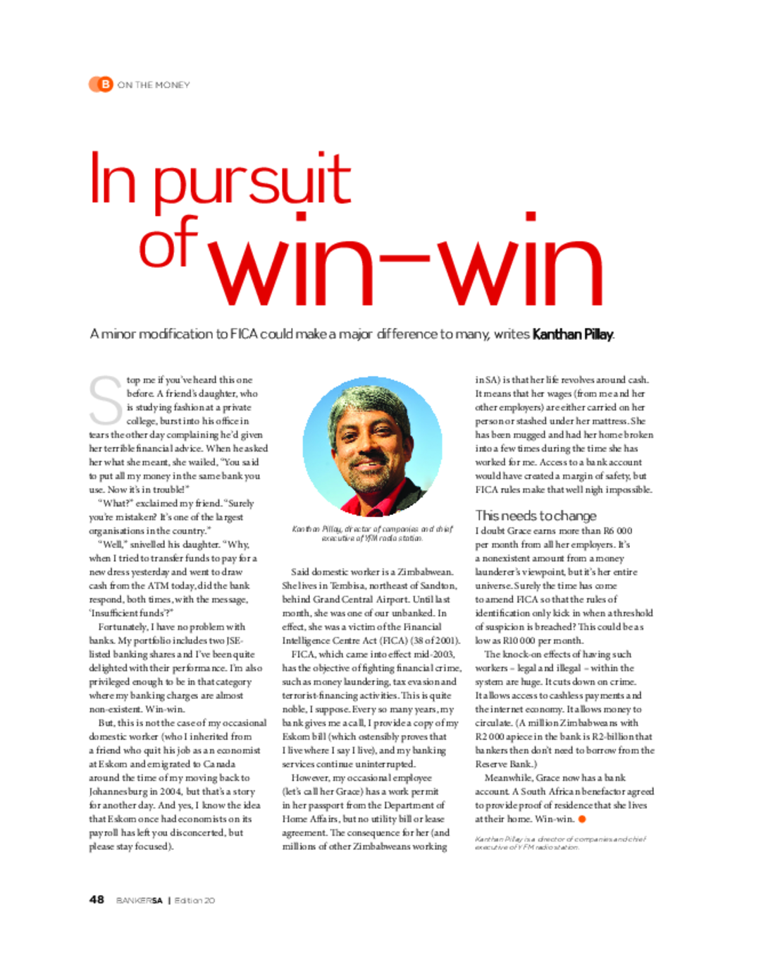 Said domestic worker is a Zimbabwean. She lives in Tembisa, north-east of Sandton behind Grand Central Airport. And up until last month, she was one of our unbanked. In effect, she was a victim of FICA.