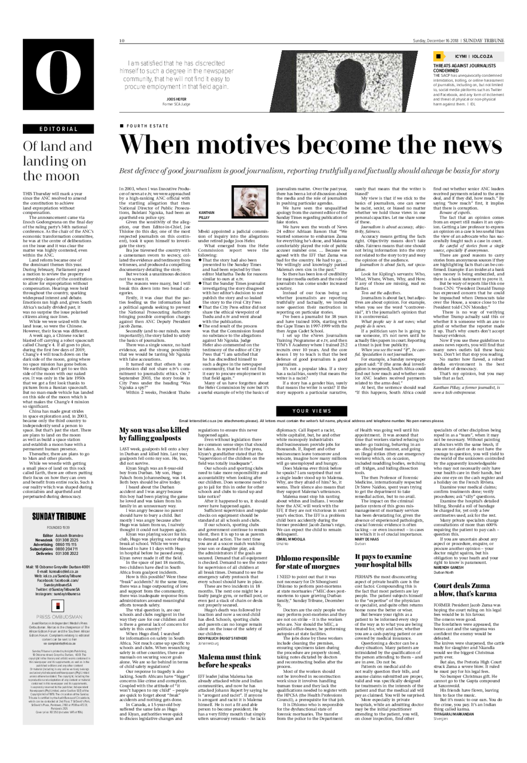 - That the Sunday Times journalist investigating the story disagreed with her editor’s decision to not publish the story and so leaked the story to the rival City Press